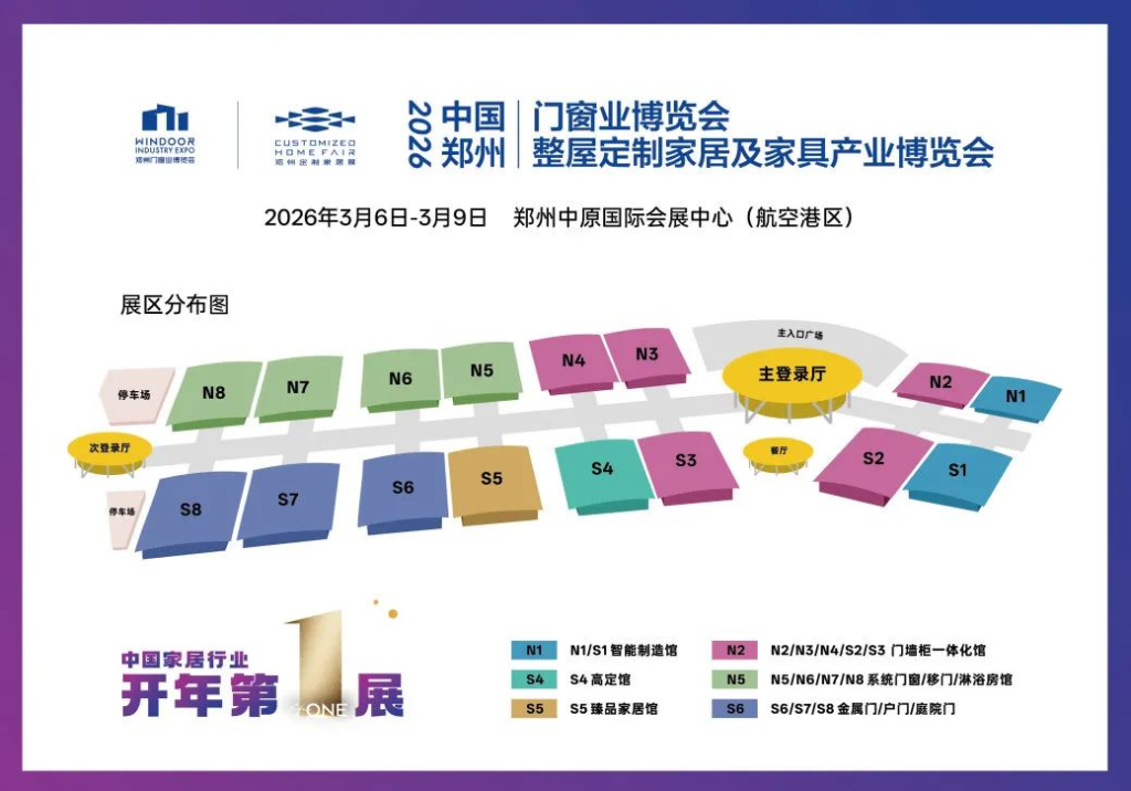 一城双展,融合共创!2026年3月6日-9日,“2026中国郑州门窗业博览会”“2026中国郑州整屋定制家居及家具产业博览会”将在“亚洲第二大展馆”–郑州中原国际会展中心(航空港区)同期盛大举行!
