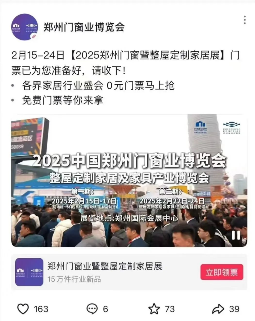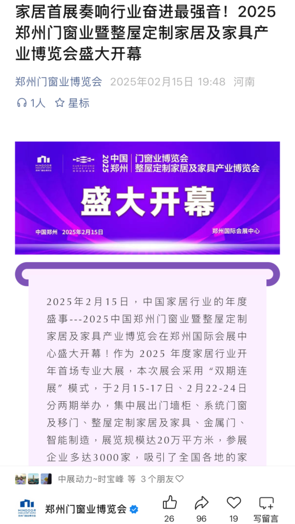 郑州门窗业暨整屋定制家居及家具产业博览会自创立以来,始终以“创新驱动”为引领,历经数届深耕,已发展成为国内家居行业的旗舰标杆展会。在“双循环”发展格局背景下,更跃升为“家居内销首选商贸平台”。2025年展会数据报告显示观众达19.5万人次,极大地提振家居市场消费需求,刺激行业经济的蓬勃增长。