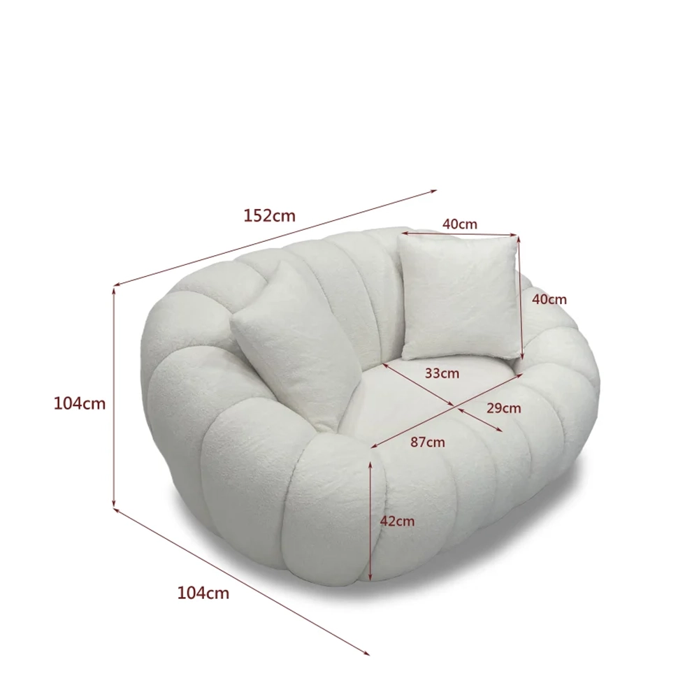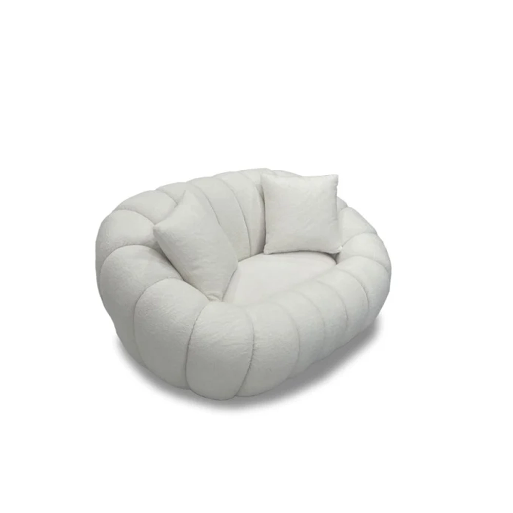 The Pumpa Sofa draws inspiration from the soft, rounded form of a pumpkin, bringing warmth and elegance to any living space. Wrapped in chenille linen-blend fabric with a solid pine frame and premium cushioning, it combines structure, comfort, and timeless charm for a relaxed modern home.