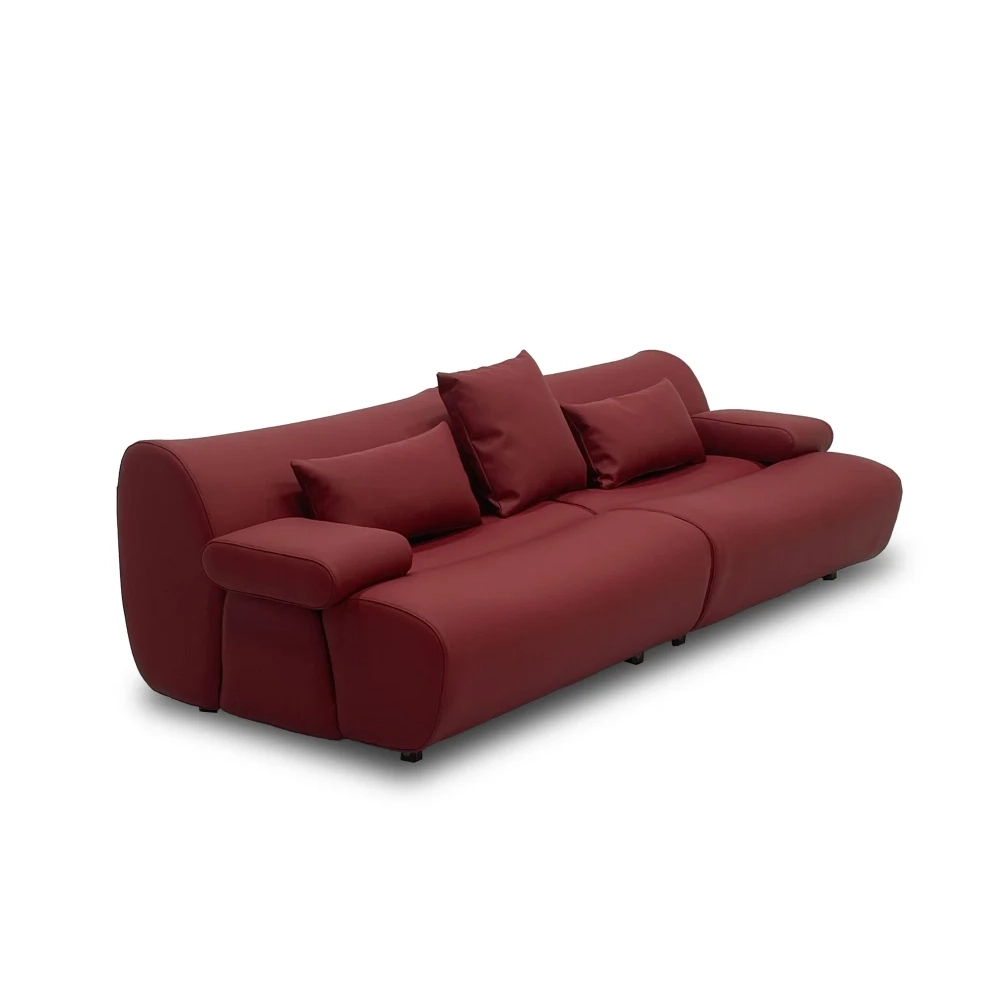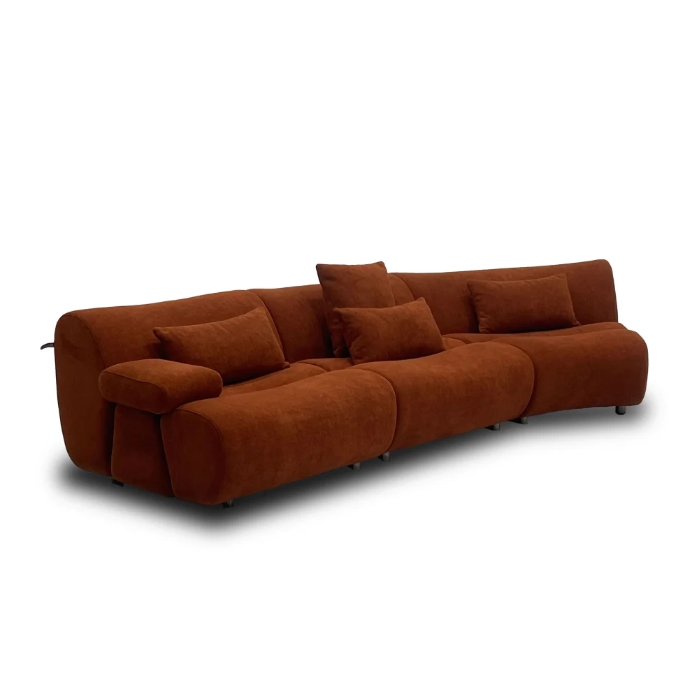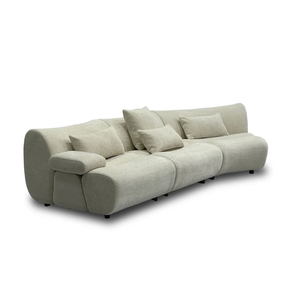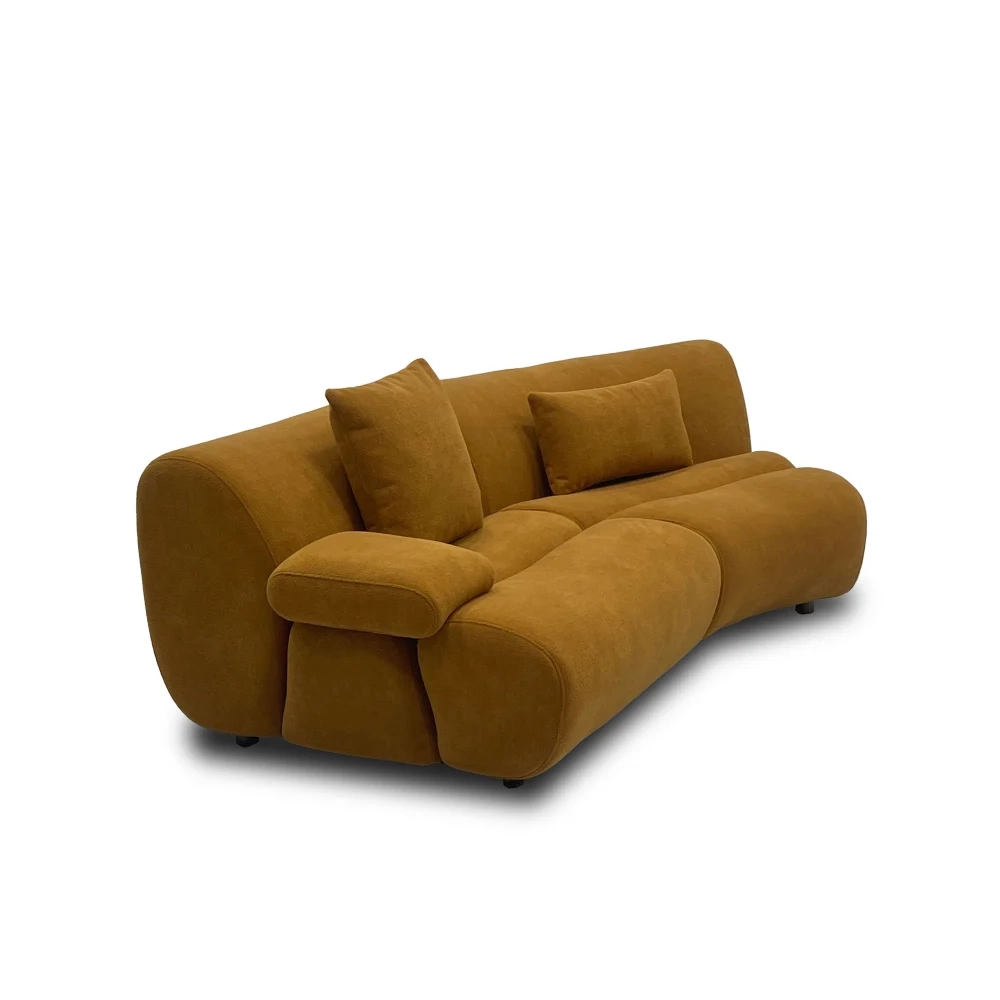 竹节沙发 Bambora Sofa 以竹节般的柔和纹理和自然气息为灵感,将麂皮绒的高贵质感与饱满柔软的坐感完美结合。麂皮绒面料细腻轻盈、触感温暖,散发典雅大气的魅力;搭配全松木框架和多层柔软填充结构,带来轻柔包裹却稳固安心的坐感体验,是现代轻奢家居的理想之选。