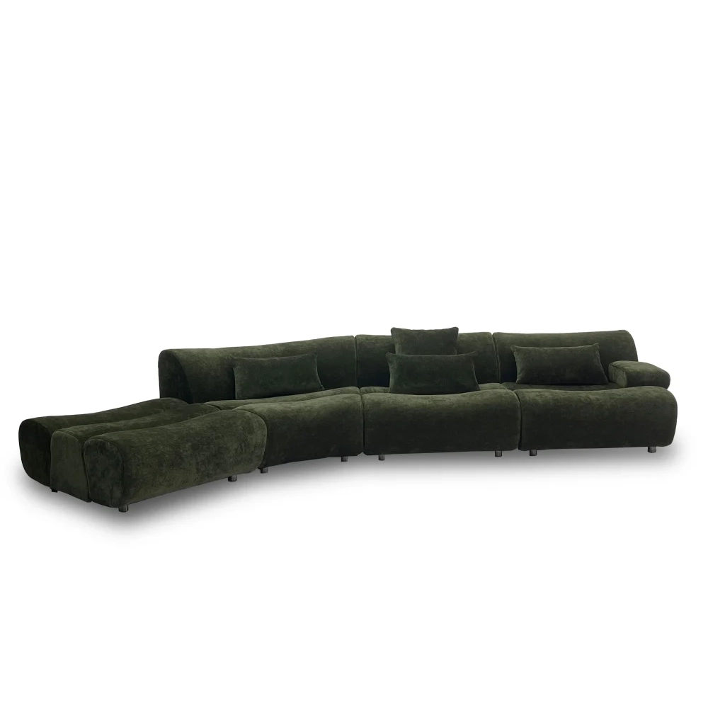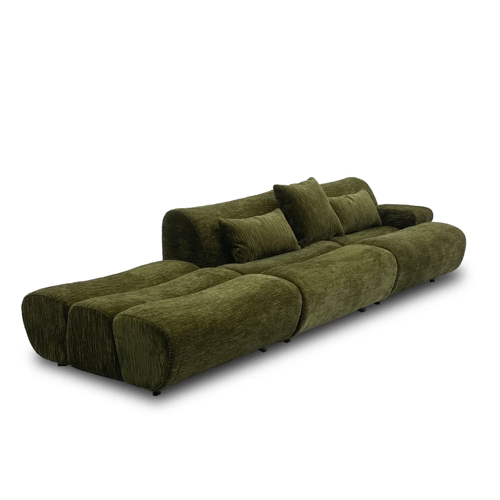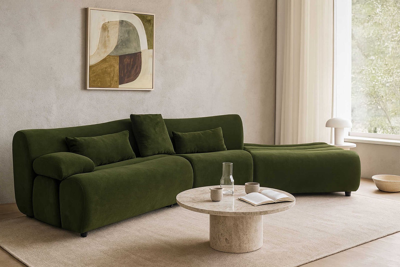 竹节沙发 Bambora Sofa 以竹节般的柔和纹理和自然气息为灵感,将麂皮绒的高贵质感与饱满柔软的坐感完美结合。麂皮绒面料细腻轻盈、触感温暖,散发典雅大气的魅力;搭配全松木框架和多层柔软填充结构,带来轻柔包裹却稳固安心的坐感体验,是现代轻奢家居的理想之选。