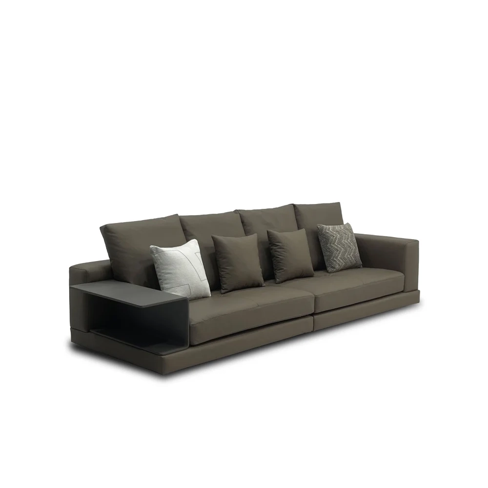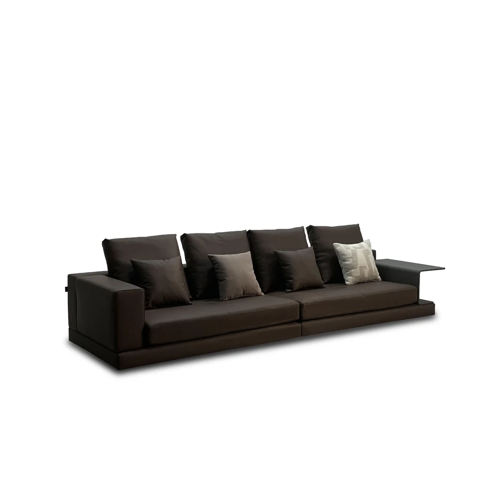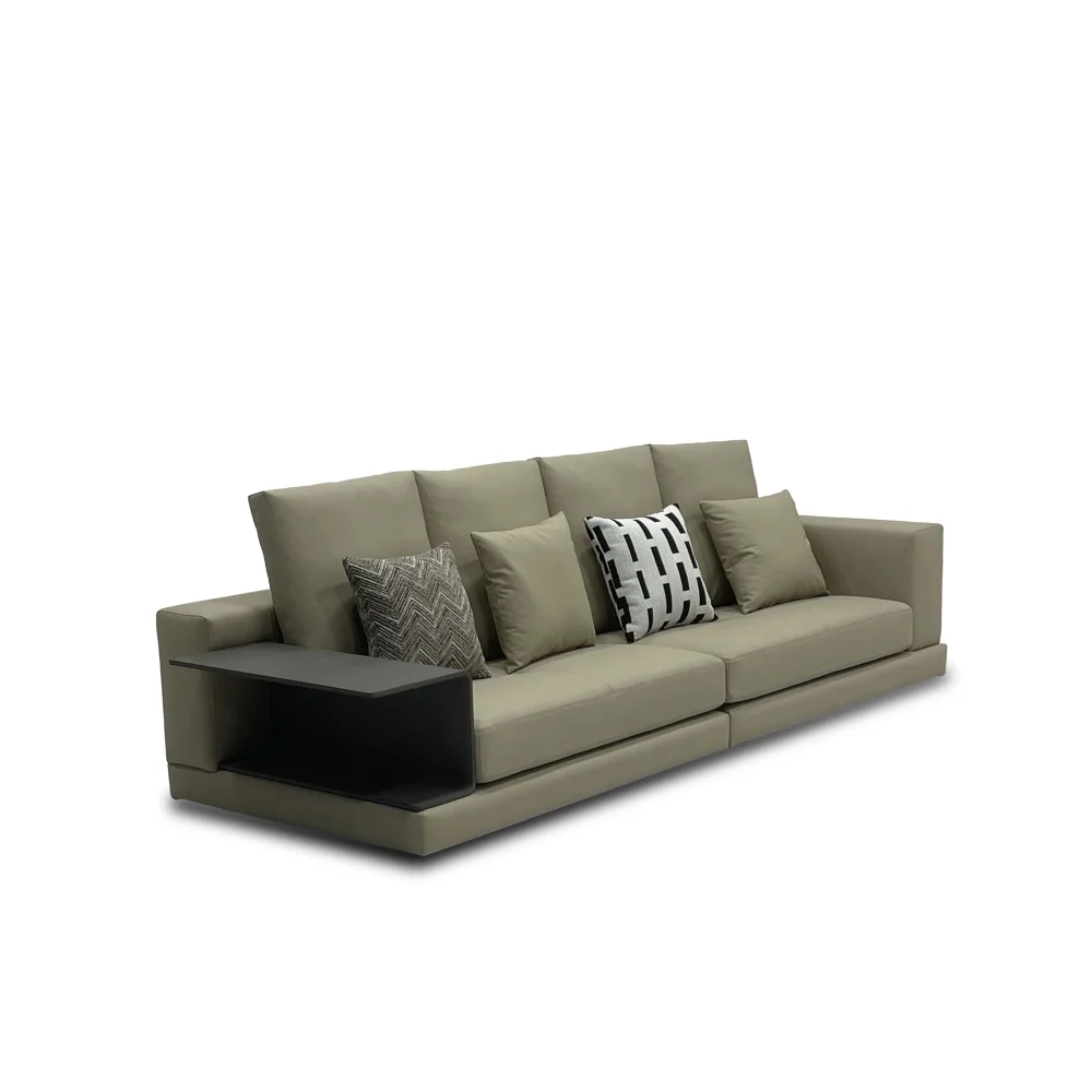 康纳利沙发 Connary Sofa 将现代简约与精致工艺完美融合,呈现出稳重而不失格调的设计语言。高仿真皮质感面料带来柔滑触感与真皮般视觉效果,搭配全落叶松框架和高密度填充结构,稳固耐用。可选钢板扶手与金属脚架设计,使其兼具力量感与艺术感,诠释现代居家高品质格调。