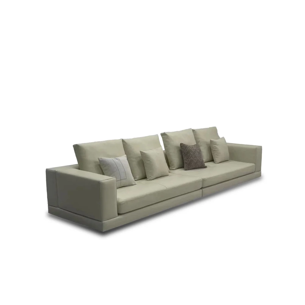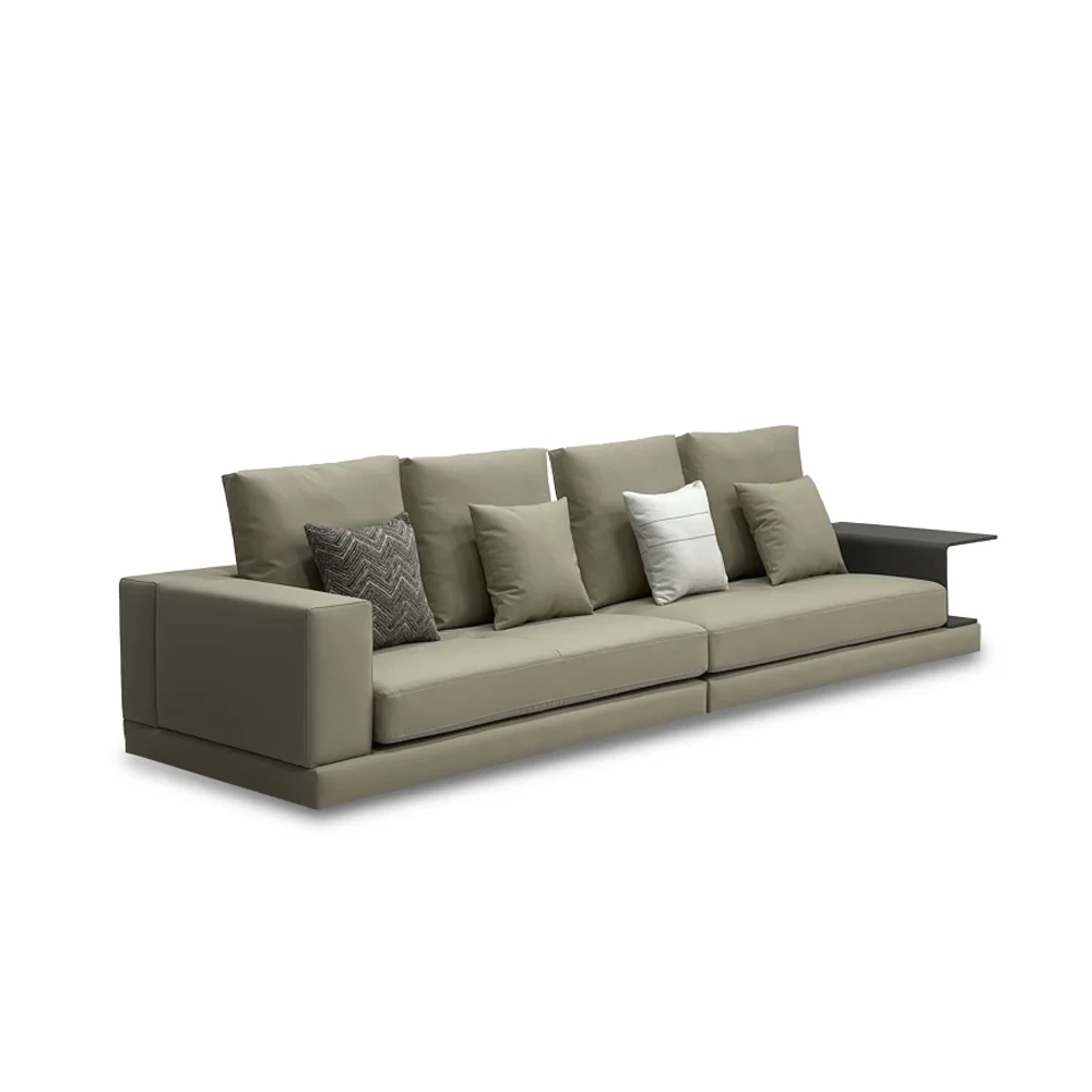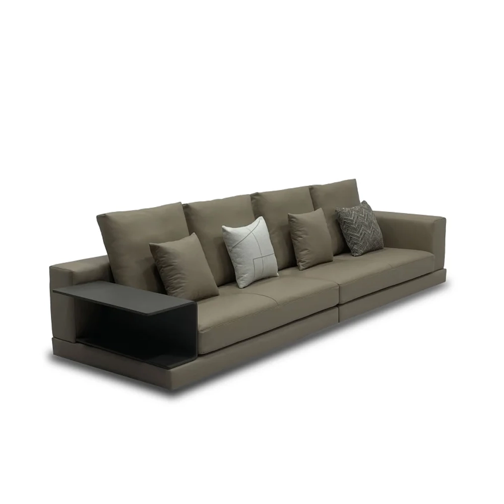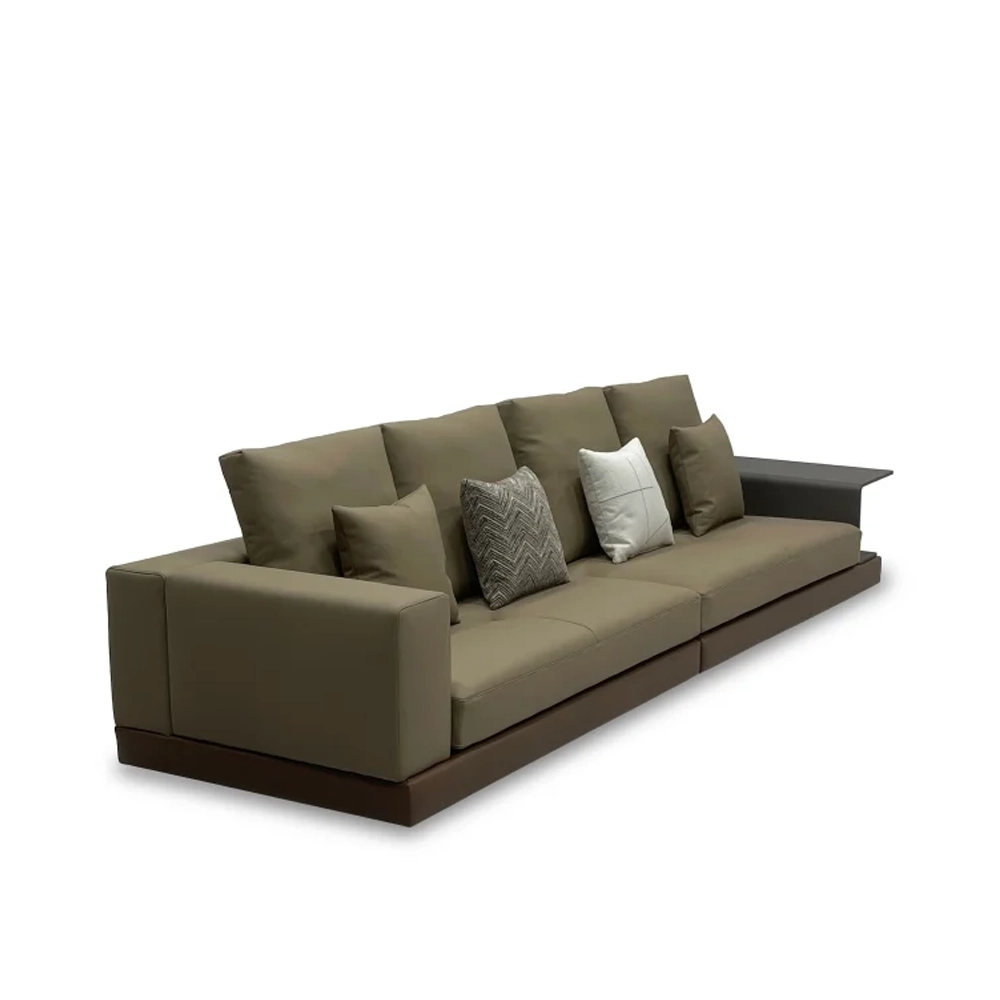 康纳利沙发 Connary Sofa 将现代简约与精致工艺完美融合,呈现出稳重而不失格调的设计语言。高仿真皮质感面料带来柔滑触感与真皮般视觉效果,搭配全落叶松框架和高密度填充结构,稳固耐用。可选钢板扶手与金属脚架设计,使其兼具力量感与艺术感,诠释现代居家高品质格调。