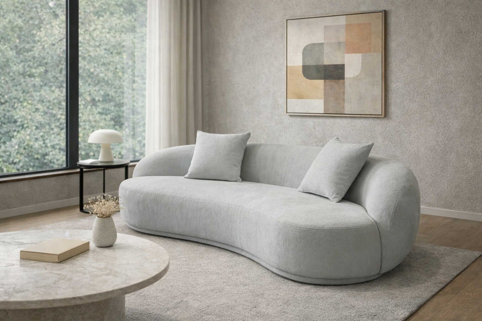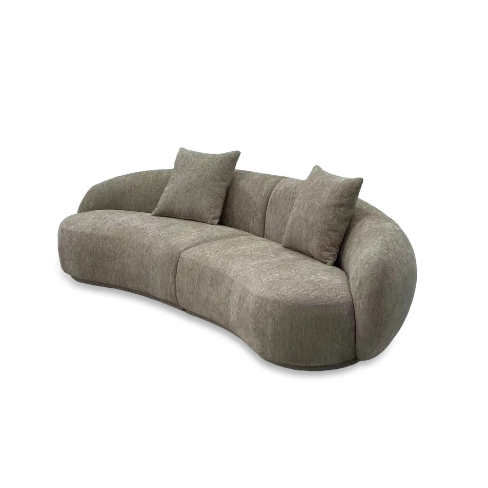 豌豆沙发 Peana Sofa 以柔软饱满的造型与舒适细腻的触感诠释温馨生活美学。雪尼尔面料带来如云般的轻盈质感与柔和光泽,搭配全实木框架与高密度坐垫支撑,让舒适与耐用兼具,是居家空间中温柔且高级的存在。