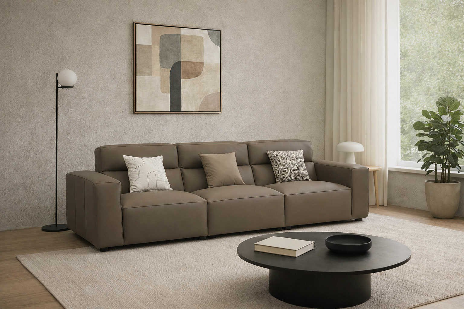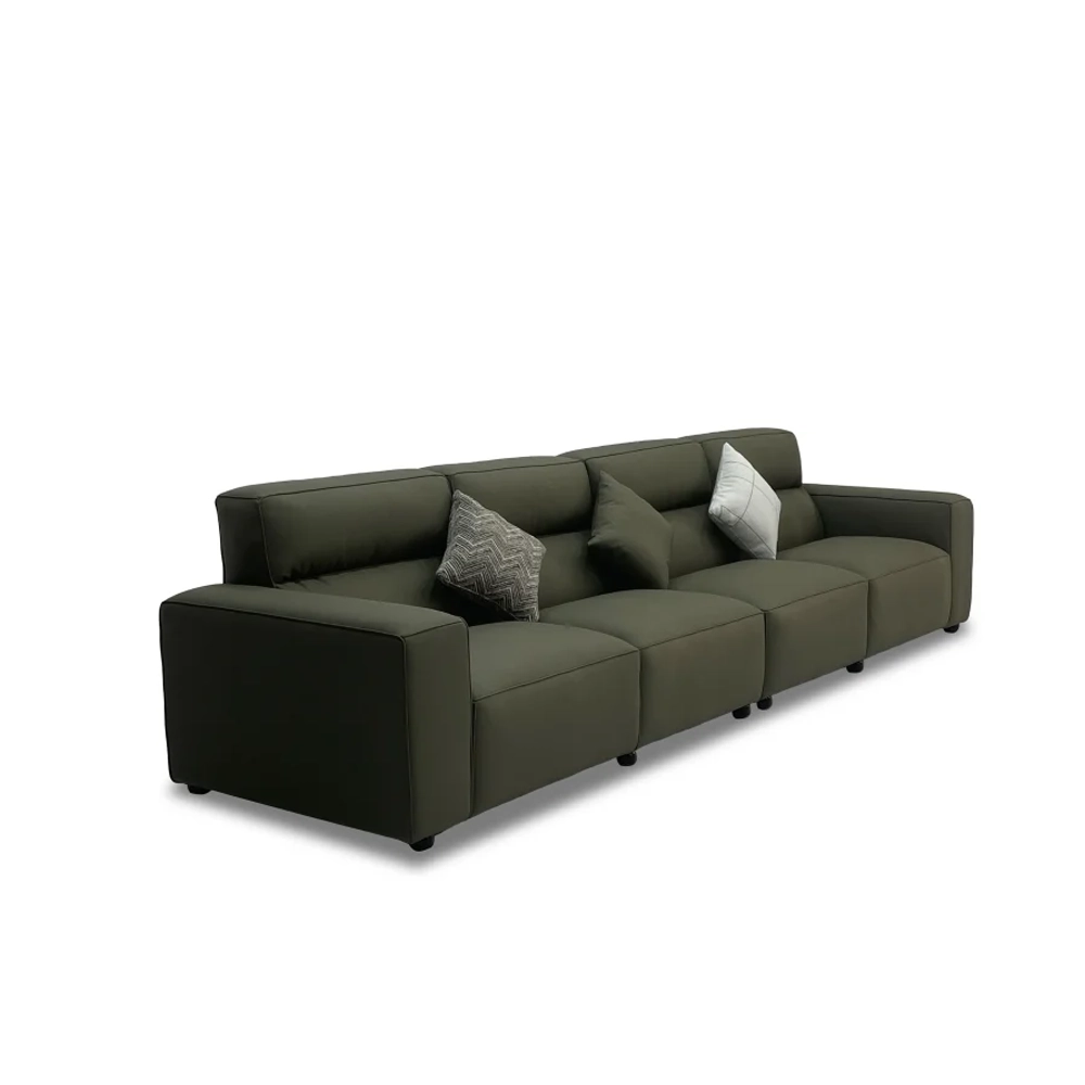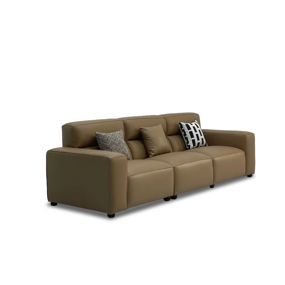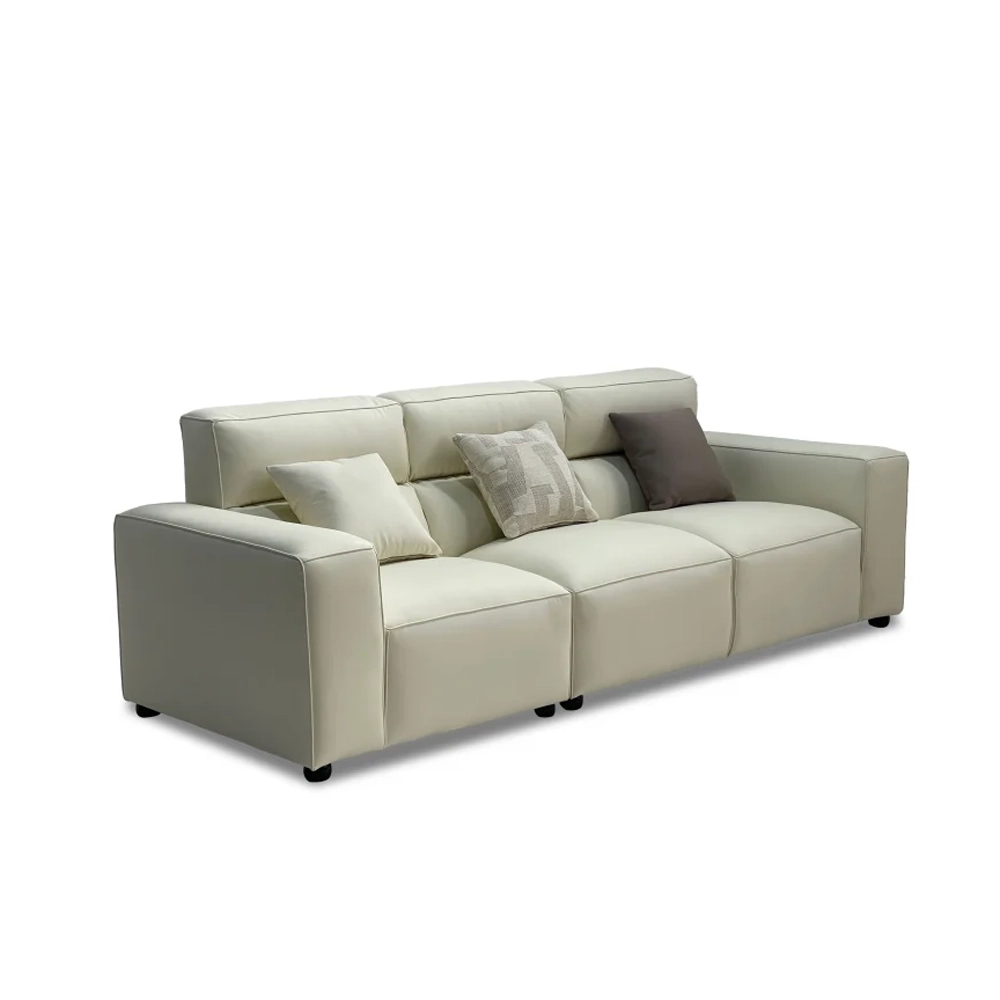 高靠背豆腐块沙发 Tofera Sofa 以极简立方造型与舒适高靠背设计融合,展现现代家居的安稳与包容。采用高仿真皮质感面料与全落叶松框架,柔软触感与坚实支撑兼具;内芯多层填充结构让舒适度倍增,为生活营造静谧放松的高品质体验。